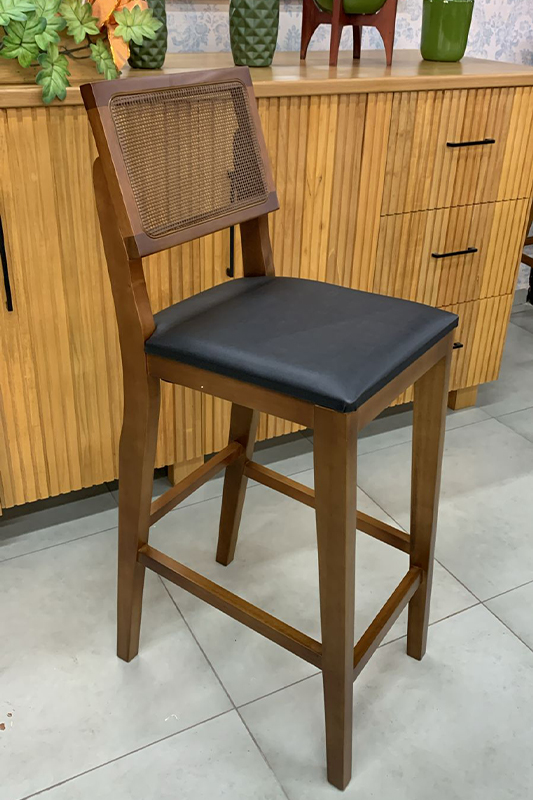 Banqueta Alta em Madeira Maciça e Encosto de Telinha estilo Retrô