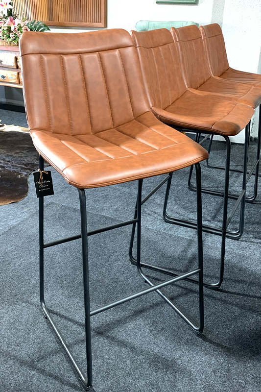 Banqueta Alta em Couro Sintético e Base em Metal estilo Industrial Moderno