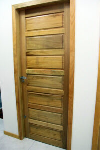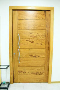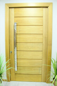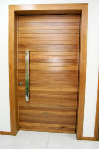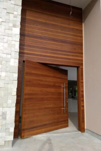 Porta de Entrada Pivotante em madeira Cumaru Ripado